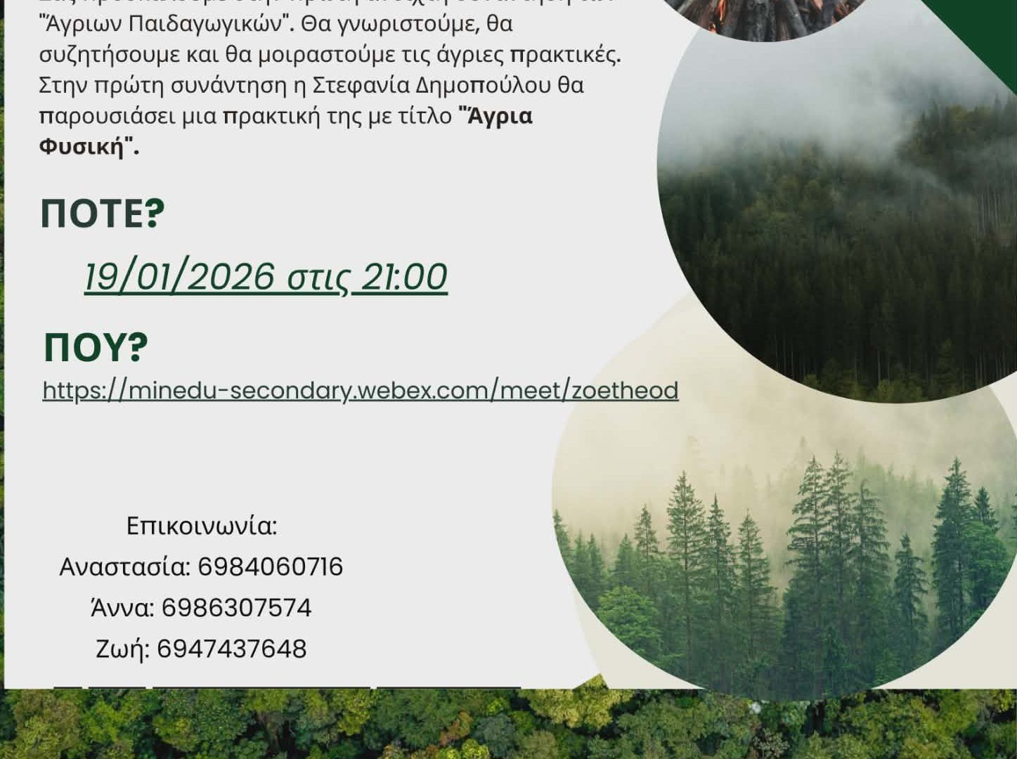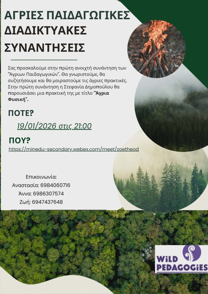 Διαδικτυακές βραδιές Άγριων Παιδαγωγικών για μοιράσματα, γνωριμία, δικτύωση και έμπνευση: https://minedu-secondary.webex.com/meet/zoetheod